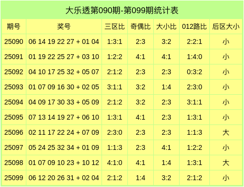 大乐透第25099期开奖号码:06、12、20、26、31 + 02、04。