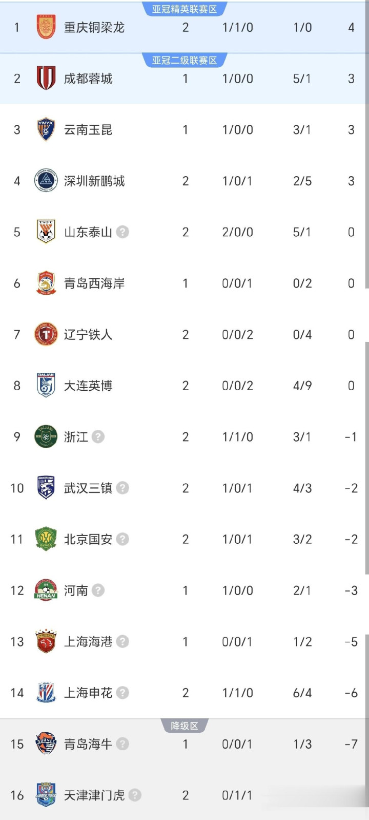 跟着本场比赛截止,中超最新积分榜如下图: