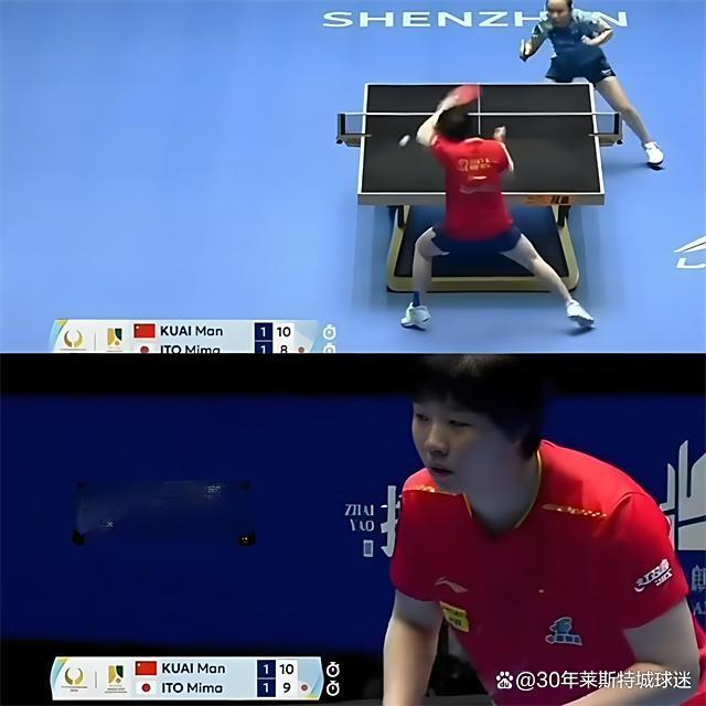2025年2月20日,在深圳亚洲杯女单小组赛第二轮中,蒯曼以3-2逆转投降日本选手伊藤好意思诚,五局比分为8-11、11-8、11-13、11-9、11-6。该场比赛,蒯曼的弘扬激发强大争议,在第三局,蒯曼如故破解了伊藤好意思诚的计谋,眼看“优势在我”已成定局,让东谈主只怕的是,她在那局一度10-5跳跃被伊藤好意思诚连得6分逆转,自后与之笨重缠斗,最终莫得被逆转。
