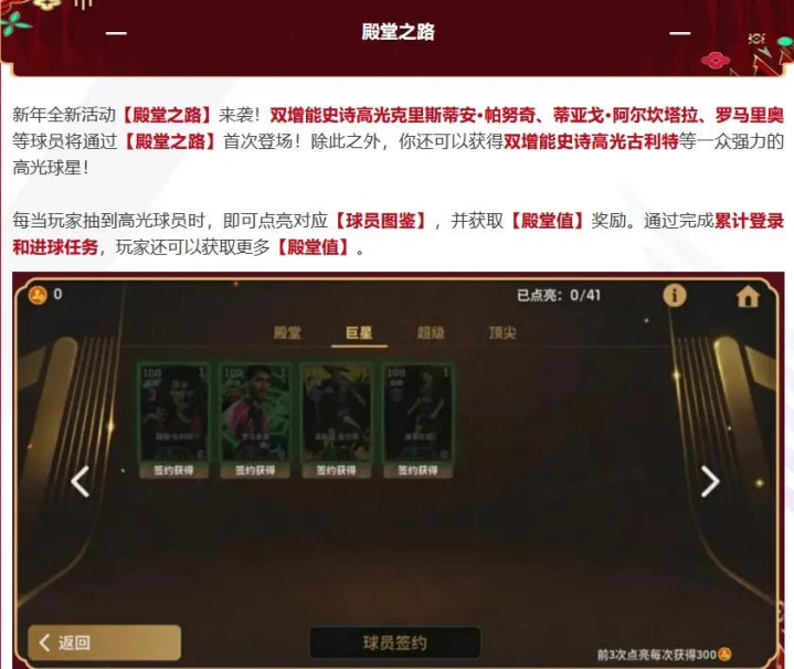 新春将至,强力球星皆贺岁,陪你红红火火迎新年!双增能史诗高光坎通纳将通过【红红火火 球星卡包】初次登场!除此除外,你还将有契机取得双增能史诗高光里杰卡尔德、卡福、科斯塔库塔、鲁尼、托雷斯、罗西基,以及一众强力的双增能梦境精选球星。
