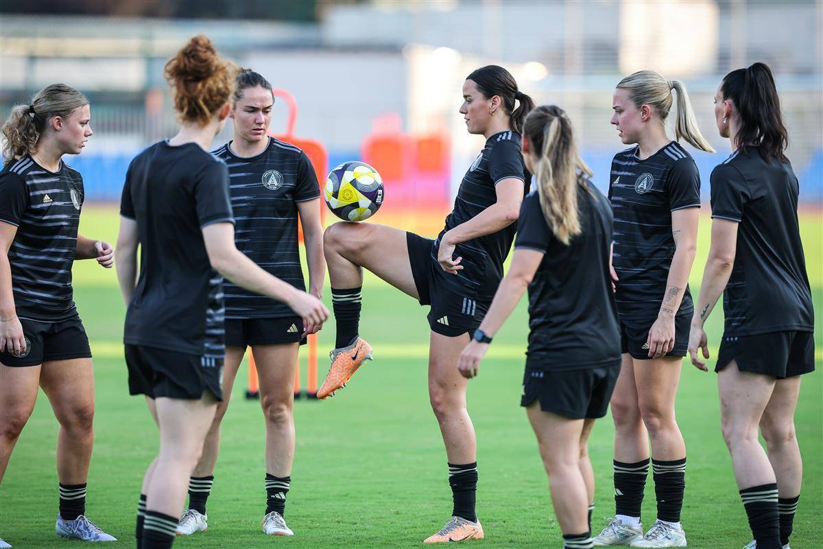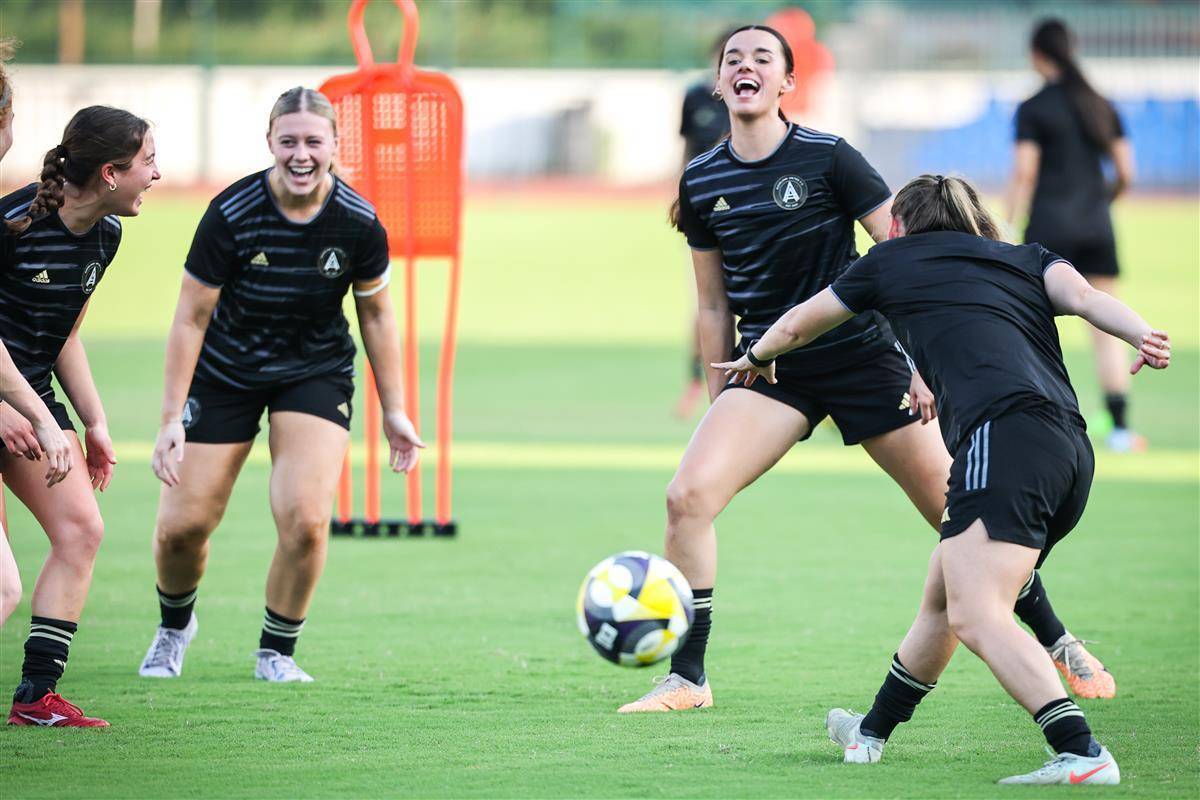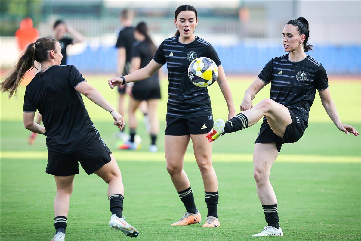 7日,期待任重道远争取告捷的奥克兰联女足在武汉体育中心外场完成了赛前临了一练,全队高下显得卓越应答。(湖北日报全媒记者 时龚 摄)