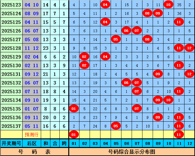 后分歧析:在第138期历史同时开奖中,和值大小为10:6,跨度奇偶比为10:6,本期后区疑望两码01和11。
