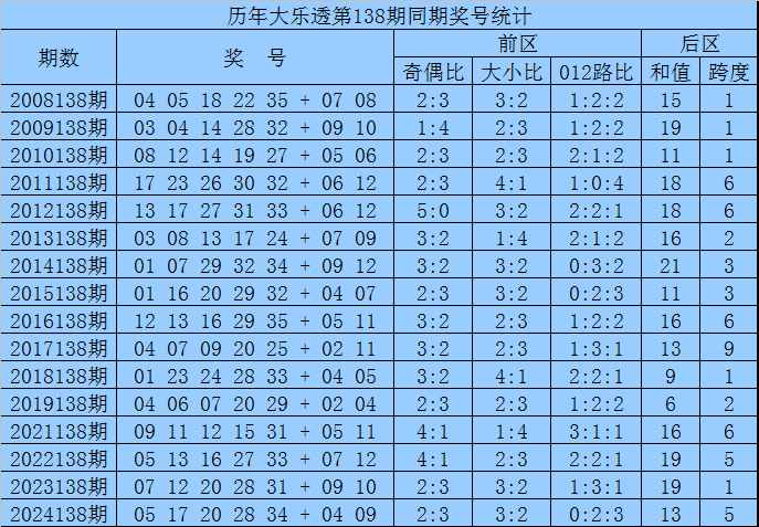 袁智囊体彩大乐透第2025138期历史同时奖号分析: